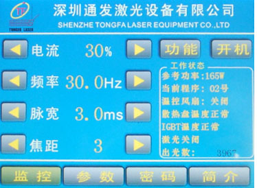 環(huán)境濕度:不高于80% 。因為焊機電源打開后,激光晶體就會持續(xù)的被冷卻系統(tǒng)冷卻,因為冷卻水一般會低于室溫,當環(huán)境濕度過大的時候,而激光晶體的溫度又低于室溫,這時激光晶體的兩個端面上會凝結(jié)水霧,當激光輸出的時候,這些水霧會大大降低激光輸出能量,而且這些附著在激光晶體端面上的水,干了以后,會在激光晶體的膜面上留下痕跡,這將會大大加快激光晶體膜面的老化。所以,為了防止這種情況的發(fā)生,冷水機的水溫設定,夏天不可以低于室溫3度,冬天不可以低于5度。